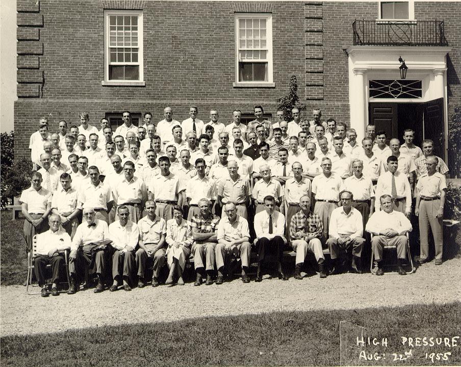 Participants at the 1955 Gordon Conference on "High Pressure Research & Techniques" which include A. Michels, E. Whalley, B. Vodar, R.L. Savage, R. Mills, D.H. Newhall, W.H. Merrill, H.G. Drickamer, and R. Dunn. I would like to thank Jeff Carroll (Gordon Research Conferences) for providing me with this photograph.